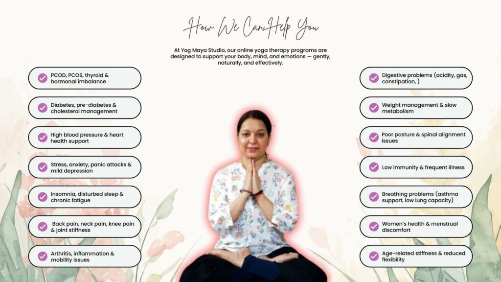 Customized yoga programs to naturally manage lifestyle disorders like diabetes, BP, thyroid, stress, and obesity.